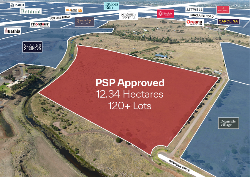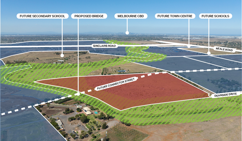 Ideally situated, the property adjoins the Deanside Village and Little Springs developments and boasts a 500m frontage to the future Kororoit Creek parklands. Major amenities are within easy reach, including the Western Freeway, the future Deanside Major Town Centre, Woodlea Town Centre, and the upcoming Westfield Mount Atkinson.