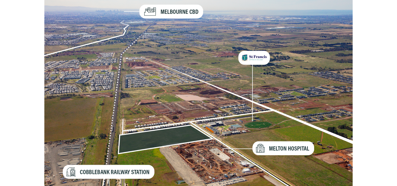 Strategically positioned, the site directly adjoins the new $1 billion Melton Hospital, currently under construction, and is expected to drive demand for nearby commercial and residential services.