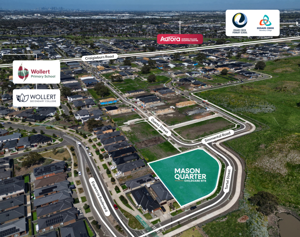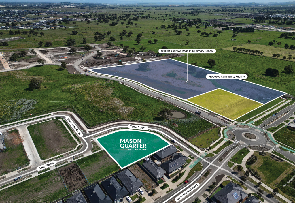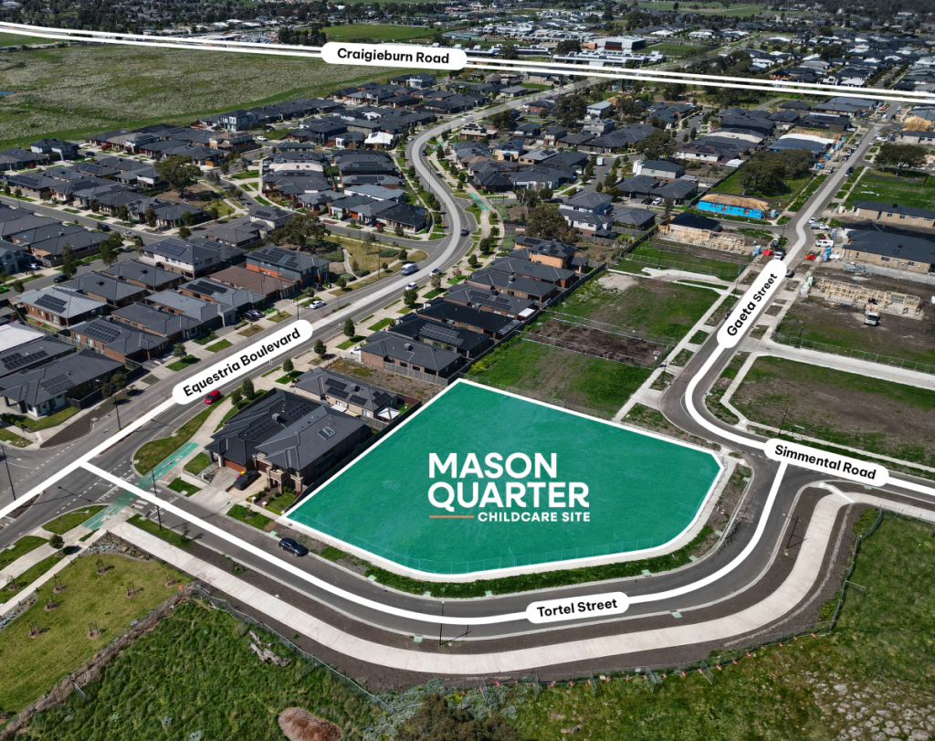 The 2,621m² site at 58A Gaeta Street, Wollert will be home to a 122-place childcare facility, with construction forecast to commence in 2025. This state-of-the-art facility will be a valuable addition to Mason Quarter’s growing community, supporting local families with quality early learning services within walking distance of their homes.