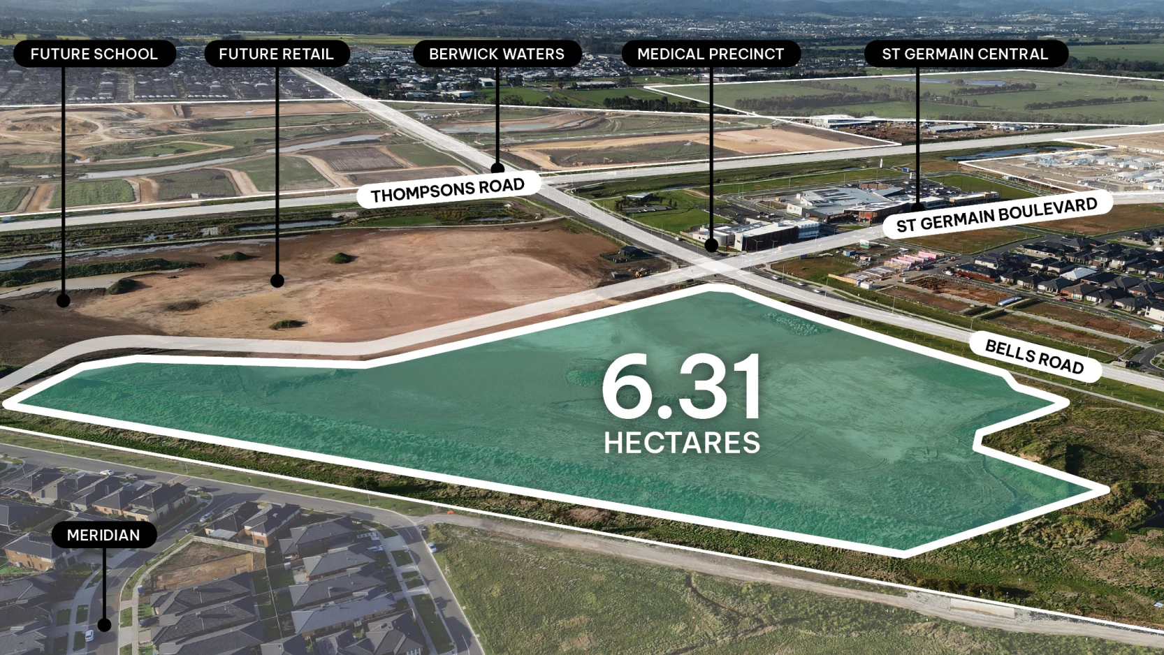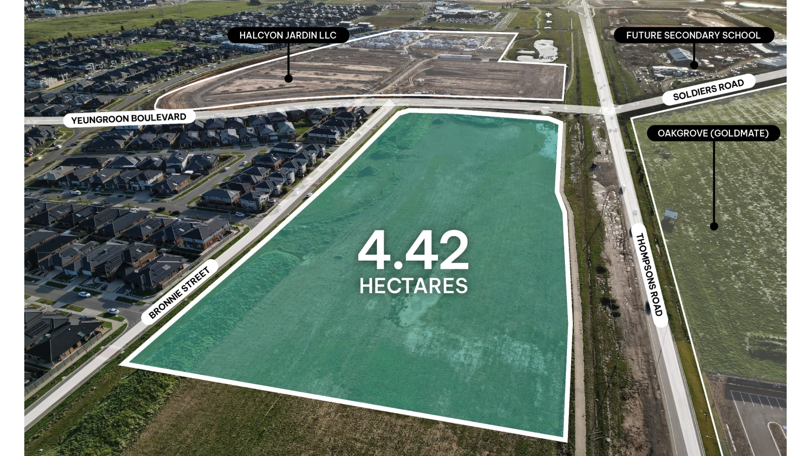 Part 15s Smiths Lane (Superlot 2) is a 4.42ha island site (including a 0.6ha reserve) strategically located with direct frontage to Thompsons Road, offering exceptional visibility and accessibility.